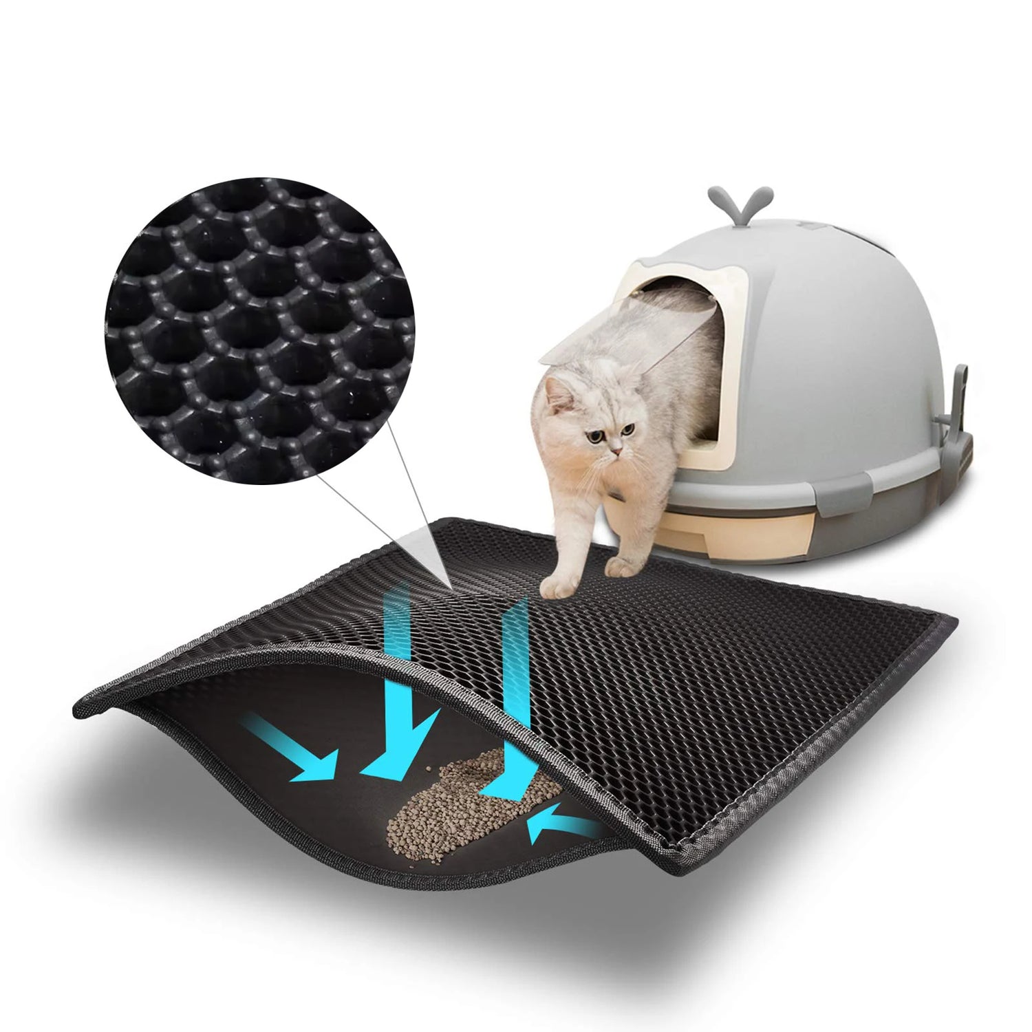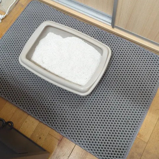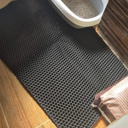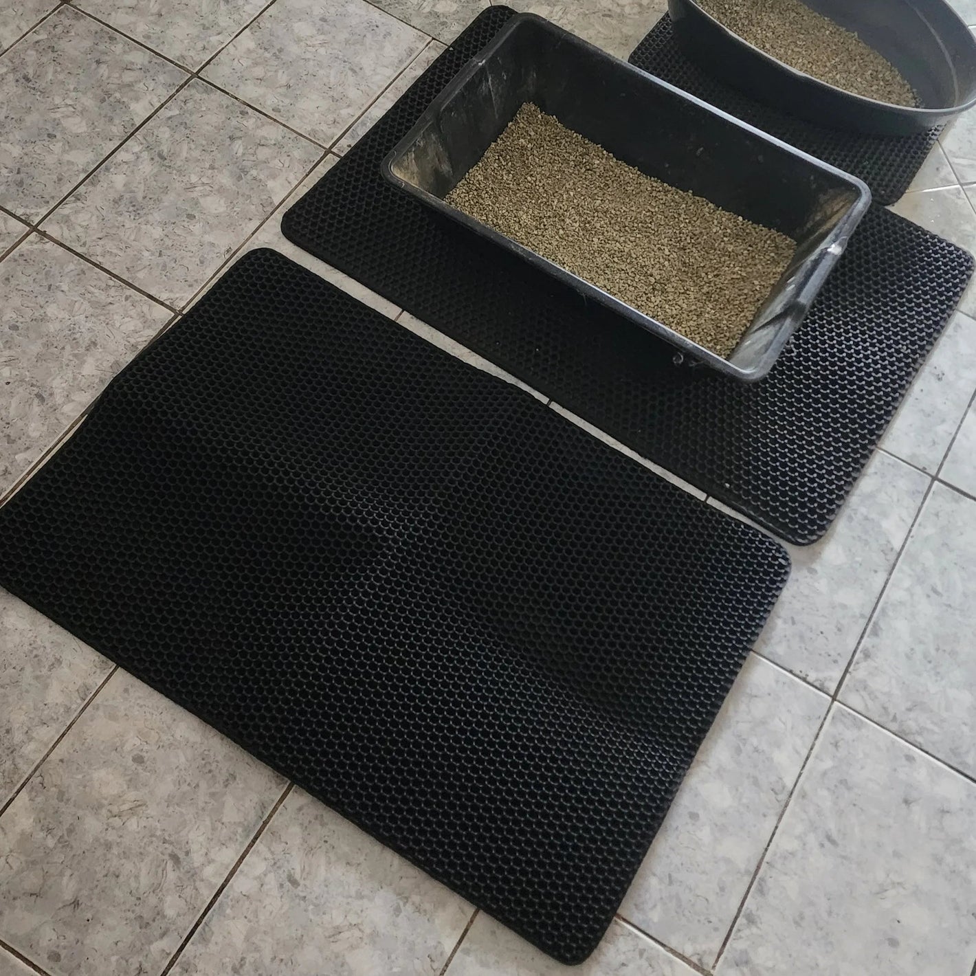 Perfect Fit by the Litter BoxThis mat stays perfectly in place and fits nicely under my cat’s litter box. It keeps everything neat, and my cat actually enjoys walking on the soft surface. Great quality and very practical.