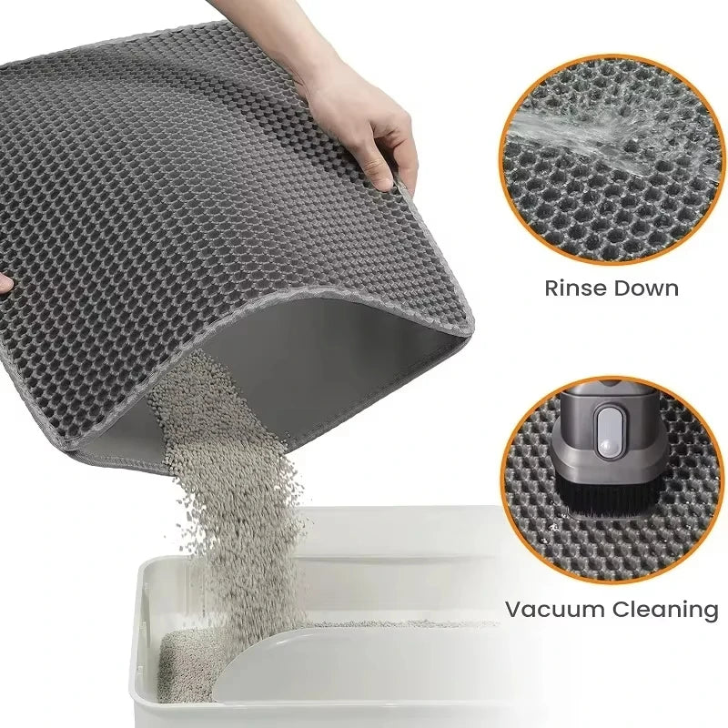 Cleaning is quick and simple. Just shake off the loose litter, rinse it with water, and let it dry. For a deeper clean, you can also vacuum the surface to remove any trapped debris.